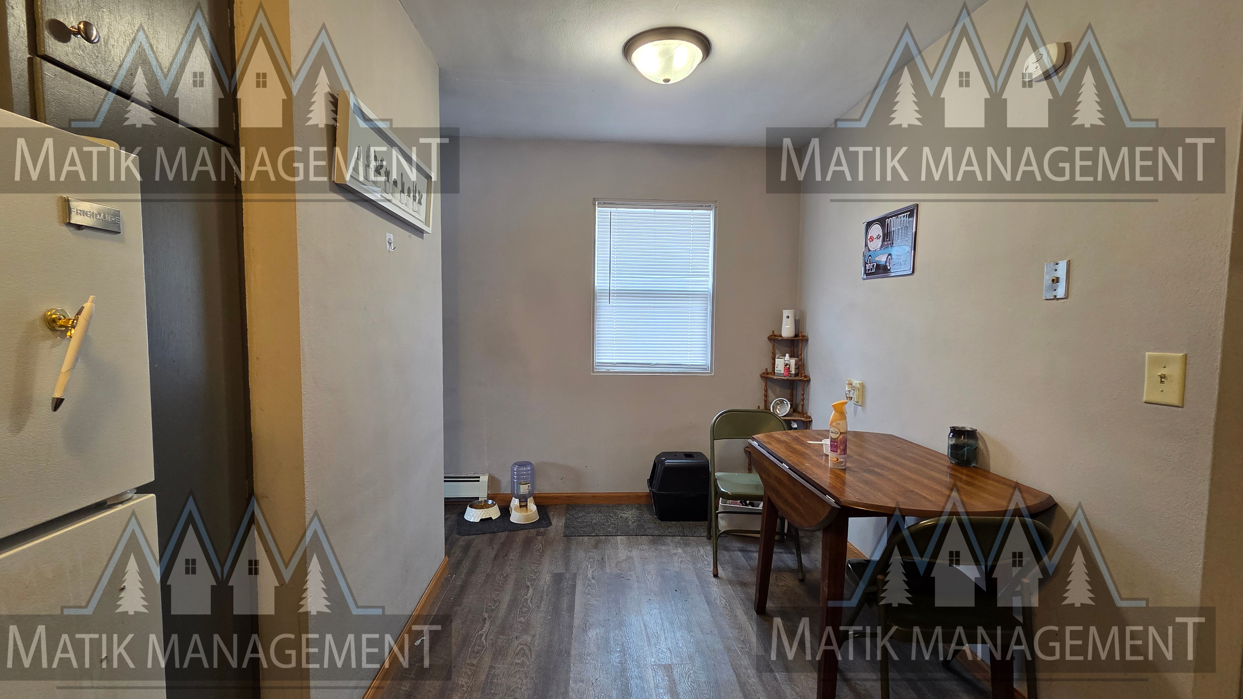This 1-bedroom apartment offers off-street parking, on-site coin laundry, and welcomes pets. This home has matching features throughout. The kitchen contains a fridge and an oven. There is carpet and vinyl flooring as well as window AC and boiler heating! Schedule a tour today to see if this home is the right fit for you!
