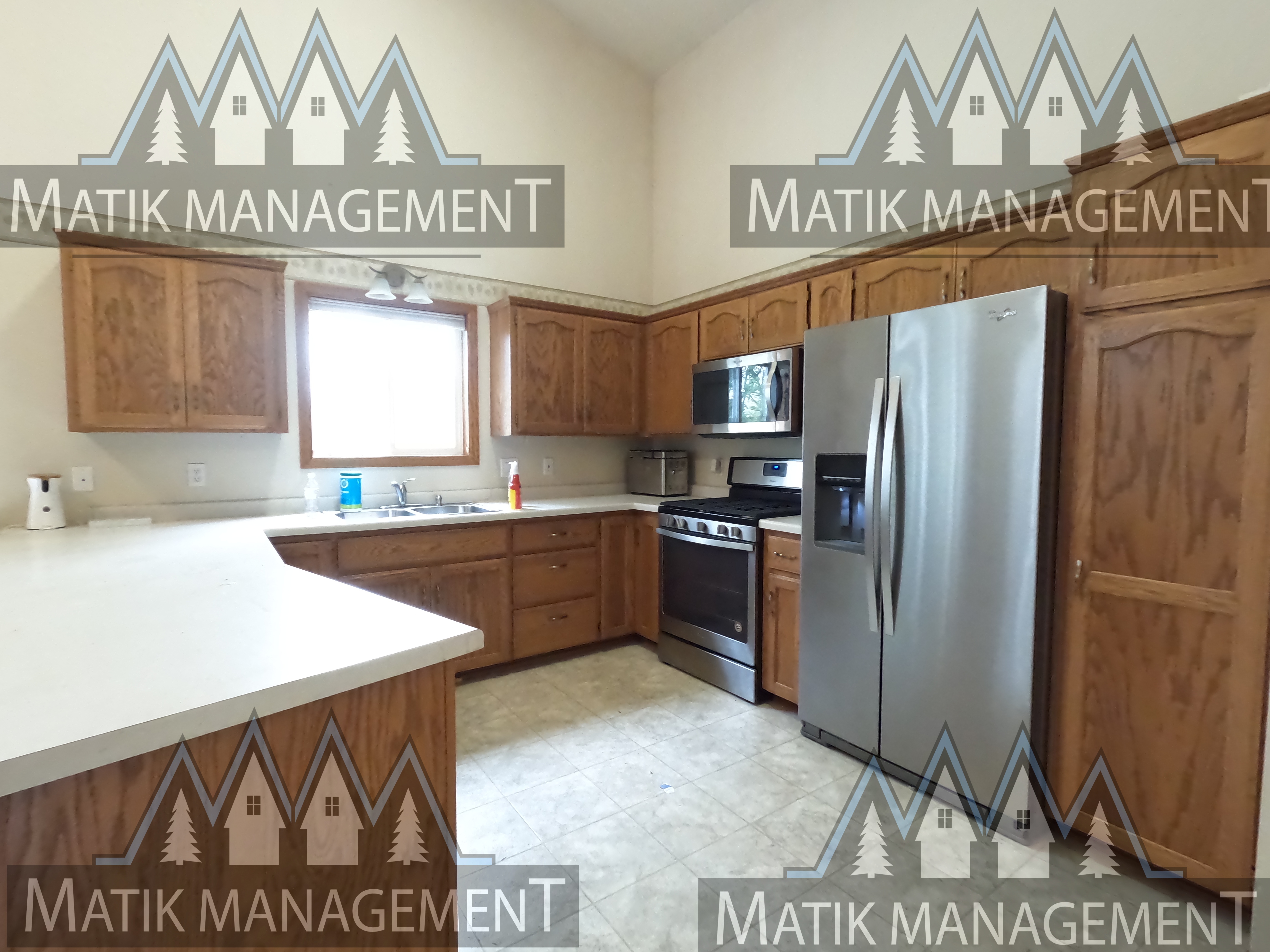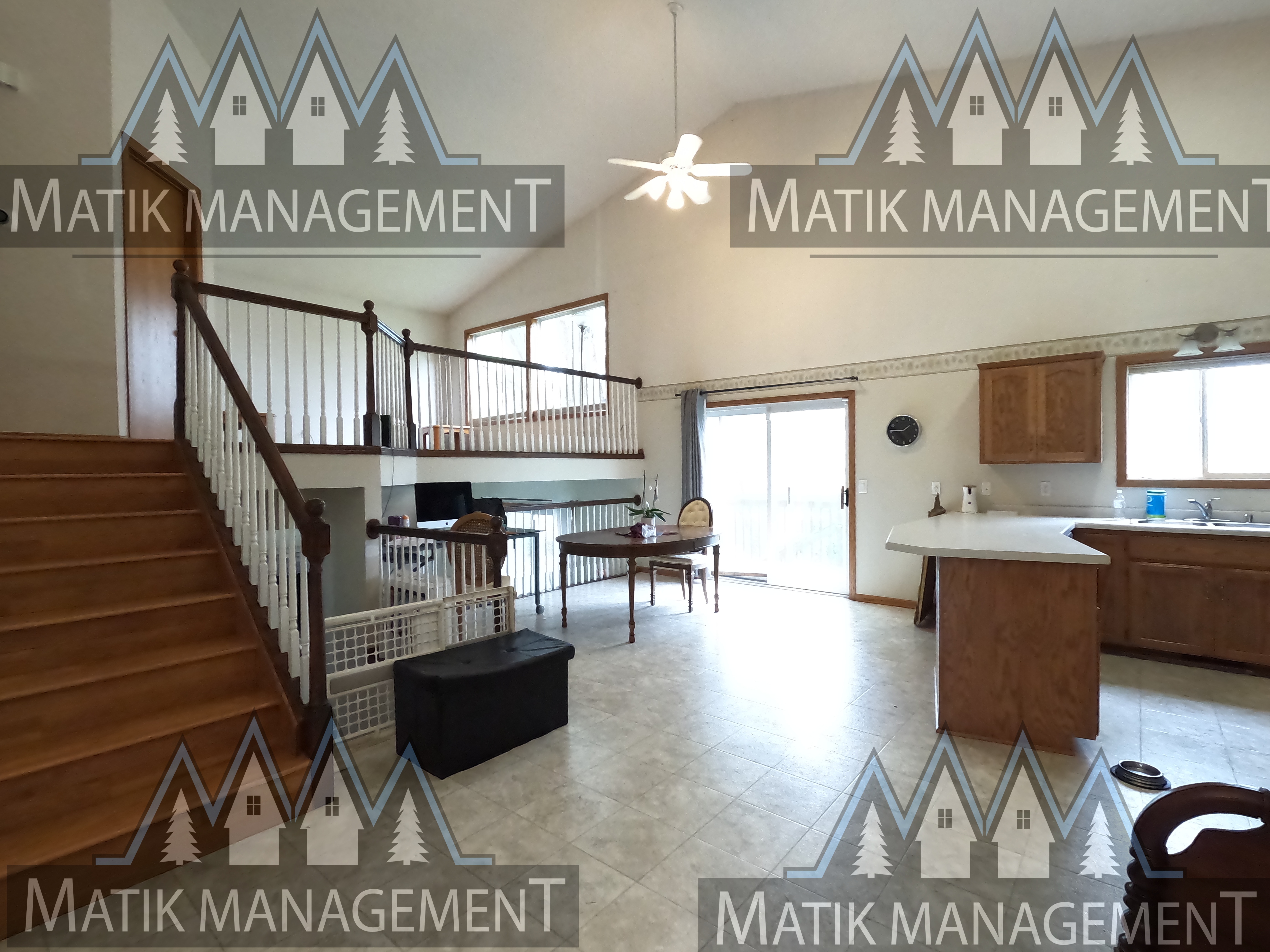 Come check out this spacious 3-bedroom home with two full and a 1/2 bathrooms! This home features two separate living areas- one with hardwood floors in the loft and the other with carpet downstairs that includes a fireplace and a sliding door leading out to the patio and backyard. In the kitchen you'll find high ceilings, stainless steel appliances (microwave, oven, dishwasher, and fridge), and a peninsula! The dining space contains another sliding door that leads out to the deck. This home contains a 2-car garage, a large backyard, and has a washer and dryer! Schedule a tour today!